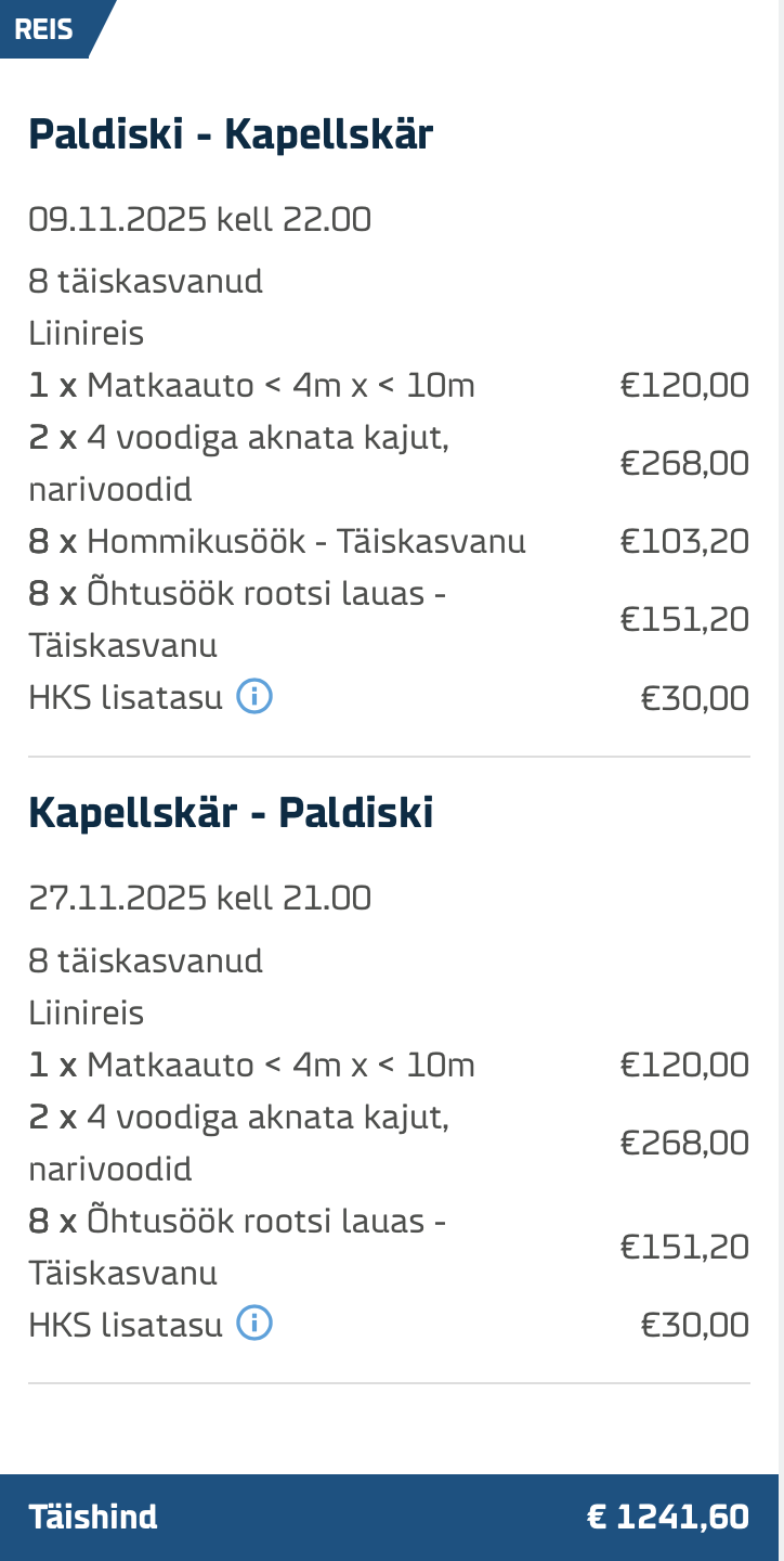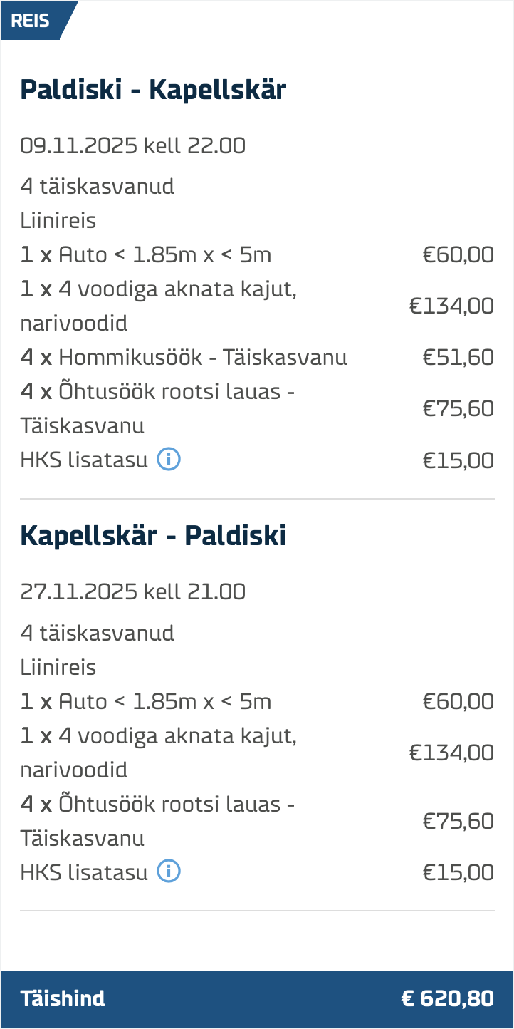 DFDS laevapiletid - 4 inimest, auto 5 m ja toit - 620.80€