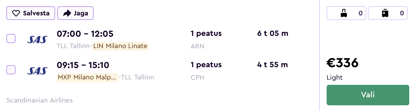 Lend: Tallinn-Milano-Tallinn käsipagasiga 336€