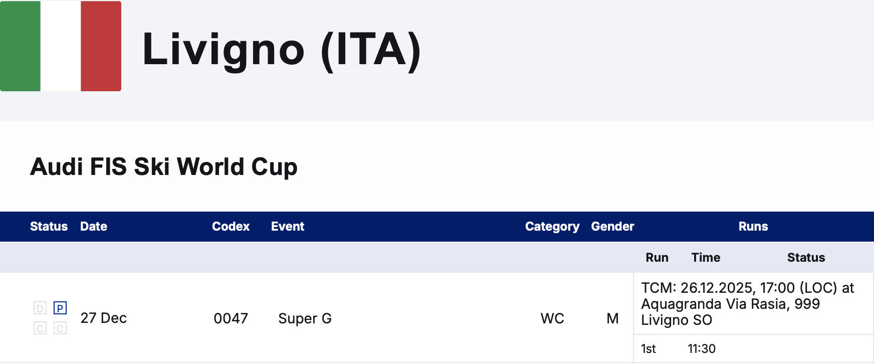 Livigno feat. Juhan Luik R, 26.- L, 28.detsember 2025