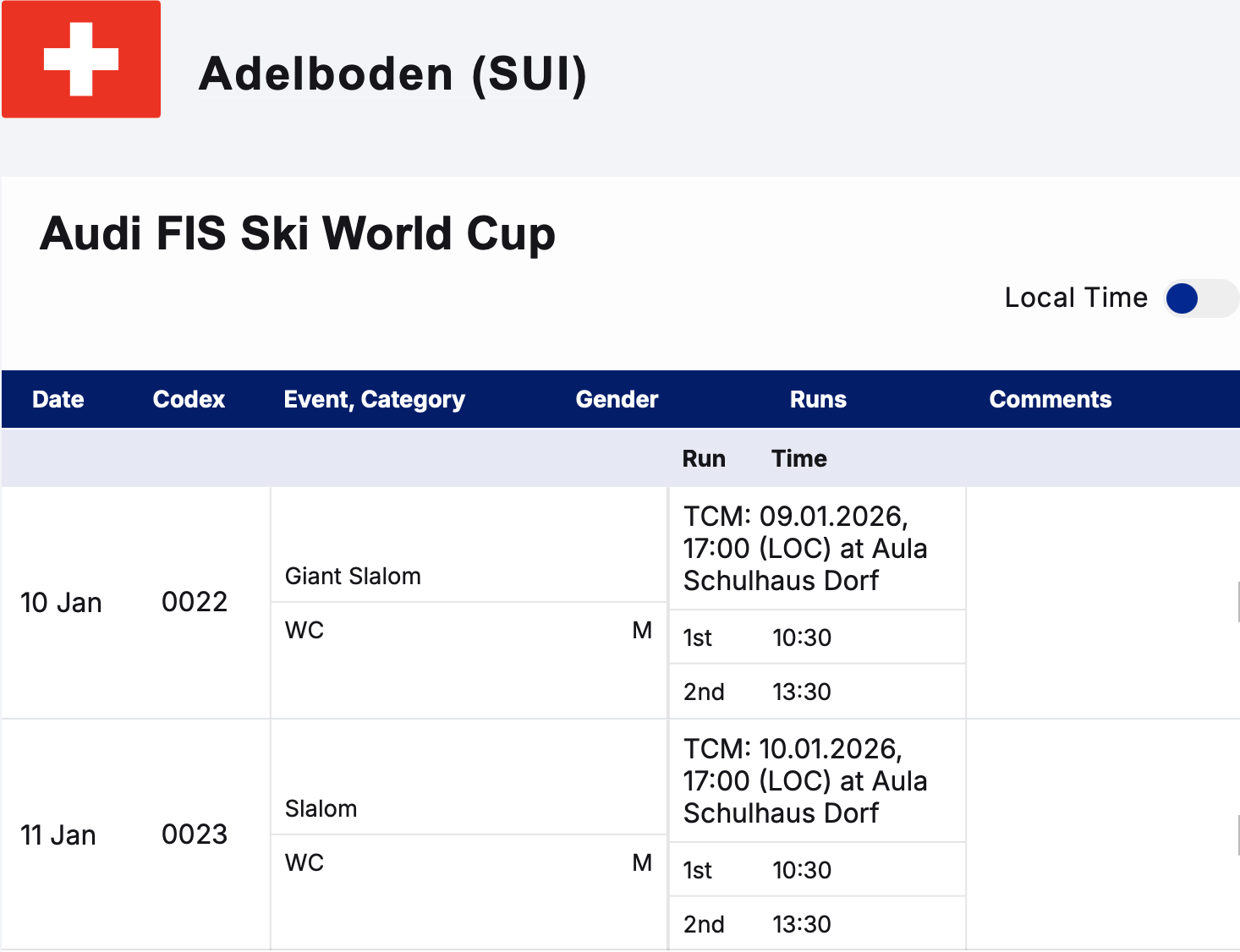 Madonna Di Campiglio ja Adelboden feat. Tormis T, 6. - P, 11. jaanuar 2026
